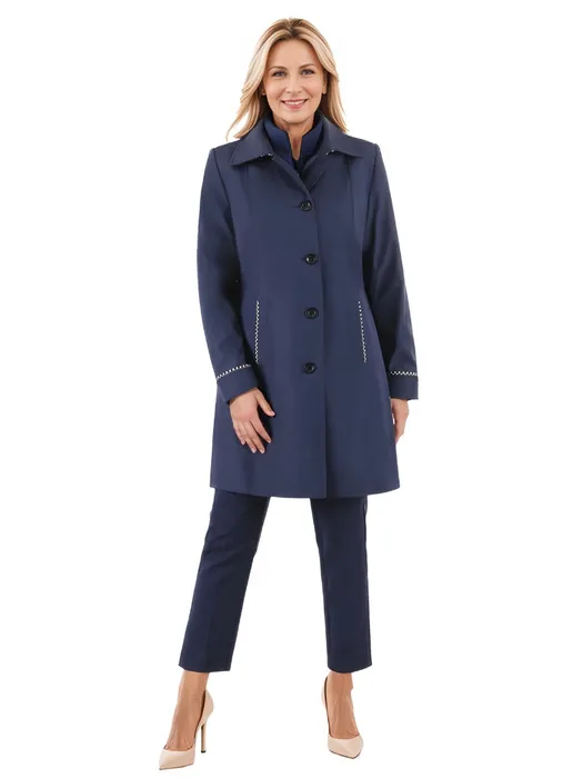 Przykładem takiego ponadczasowego okrycia może być elegancki płaszcz w głębokim granacie, z kieszeniami i minimalistycznym wykończeniem. Jego stonowany kolor doskonale wpasowuje się w garderobę dojrzałych kobiet, które cenią nowoczesną, ale nieprzesadzoną elegancję.